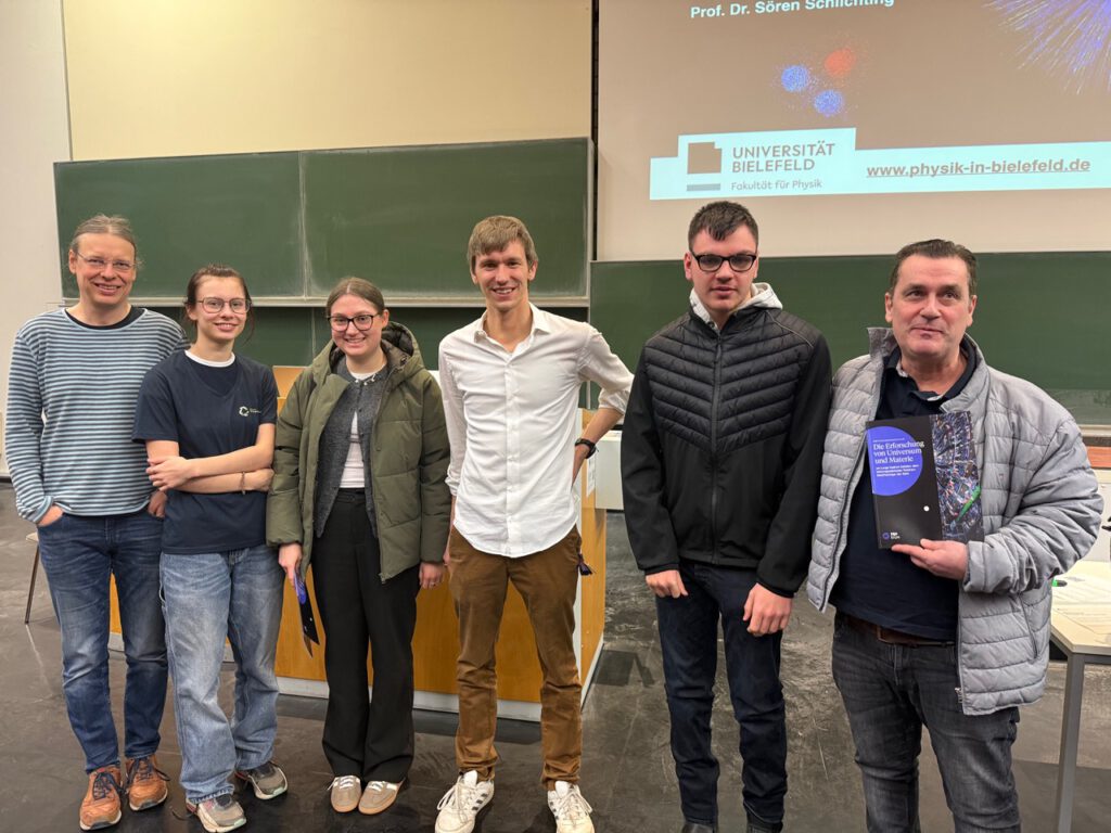 Bei dem Foto von links: Herr Echterhoff (Emilies Vater), Emilie, Anna-Lena, Prof. Dr. Schlichting, Maik, Herr Vompras.