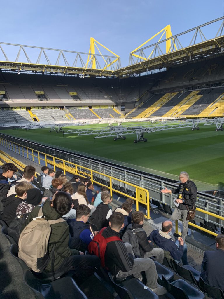 Nach der Mittagspause ging es schließlich in den Signal Iduna Park. Bei einer ausführlichen Stadionführung erlebten die Schülerinnen und Schüler, wie aufwendig ein Spieltag vorbereitet wird: Catering, Hospitality- und VIP-Bereiche, Vorbereitung der Tribünen und Stehplätze, Sicherheitskonzepte, Pflege und Vorbereitung des Rasens sowie der Aufbau der Fernsehkameras – hinter einem Bundesligaspiel steckt eine enorme organisatorische Leistung.